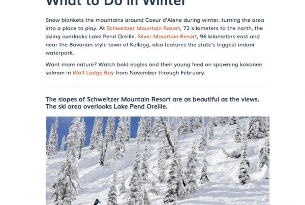 Need to escape with the family for a few days to get out of the daily grind ? A visit to Coeur d'Alene in northern Idaho makes for an enchanting weekend escape... read more >>