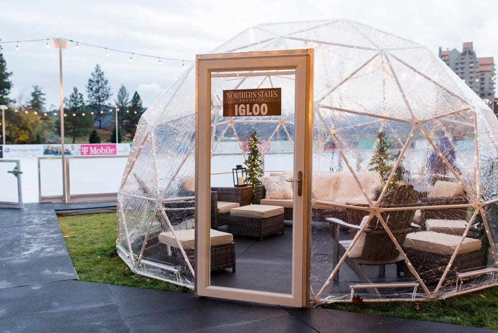 Cozy up in our beautifully decorated igloos strung with twinkling lights, fur accents and a mini fireplace to keep you toasty.