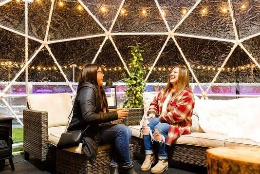 Sip our delicious loaded hot chocolate topped with whipped cream, peppermint sprinkles and a mini candy cane while you make holiday memories with friends and family. Limited number of igloo bookings are available on our website.