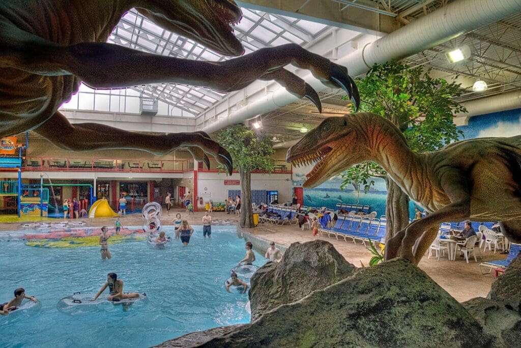Ride the waves in our indoor waterpark, Raptor Reef, featuring a wave pool; Children’s lagoon & 2 story play structure with tipping bucket, indoor/outdoor Jacuzzi & four large water slides, one at just under 400’and the “Constrictor” featured on the Travel Channel as one of the top 5 most extreme slides in the world. Our family fun park has bowling, bumper boats, go-karts, indoor & outdoor miniature golf, laser tag, climbing wall, a 32’ Ropes Climbing Course and an arcade. Triple play also has a limited service restaurant that offers pizza, hamburgers, appetizers, ice cream as well as many other choices.